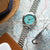This watch is a vacation on the wrist. The Caribbean Blue dial is bright, textured, and full of summer energy. As a robust 200M dive-style watch, it's ready for his next trip to the lake or the ocean.